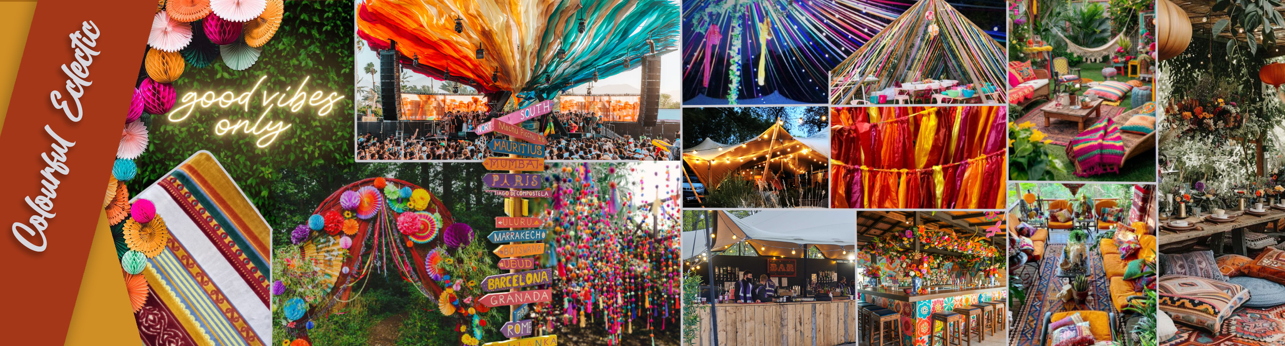 Inspired by colourful boho parties and festivals, we are bringing that big festival and party extravagance to a small stretch tent.