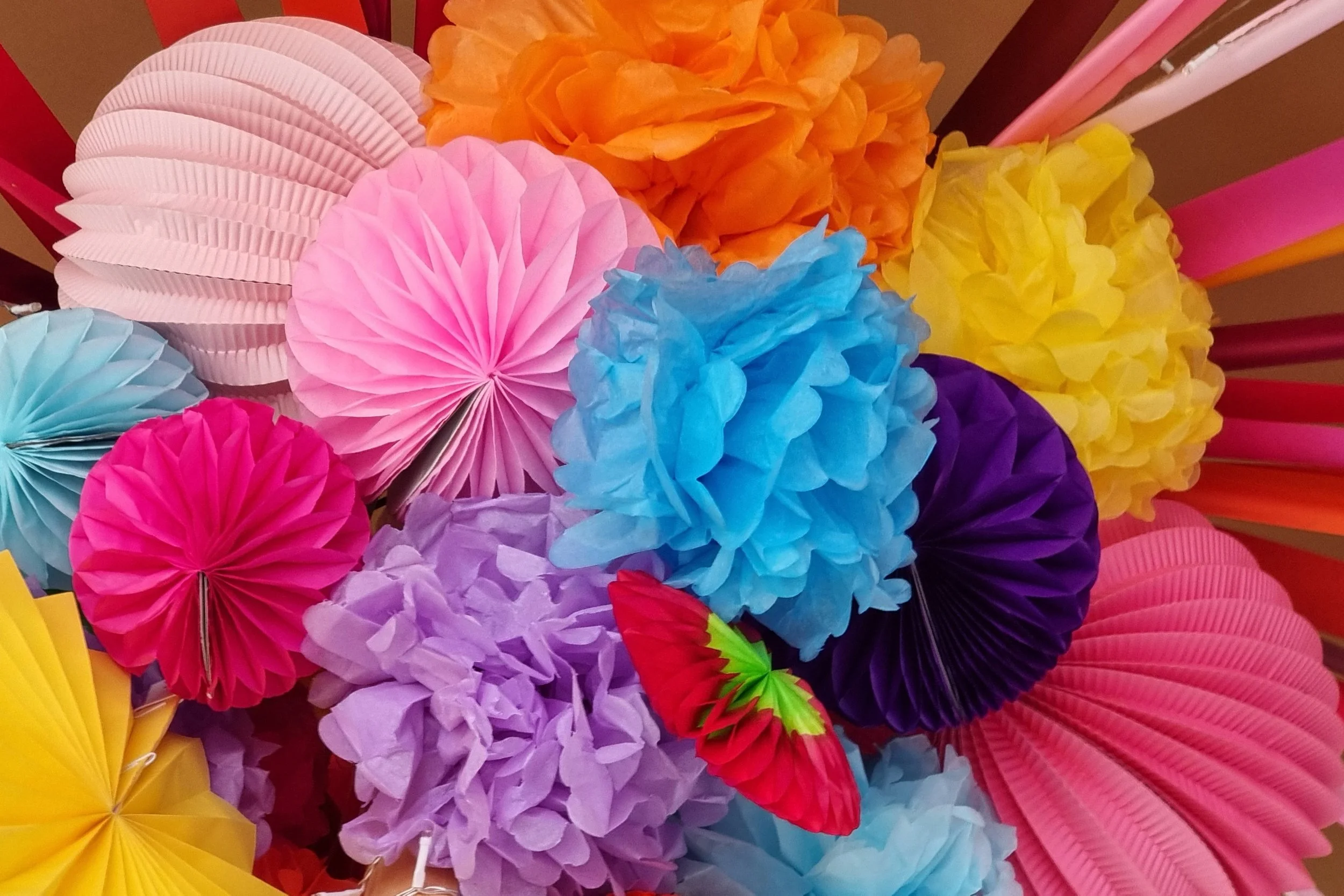 The paper lanterns and fans