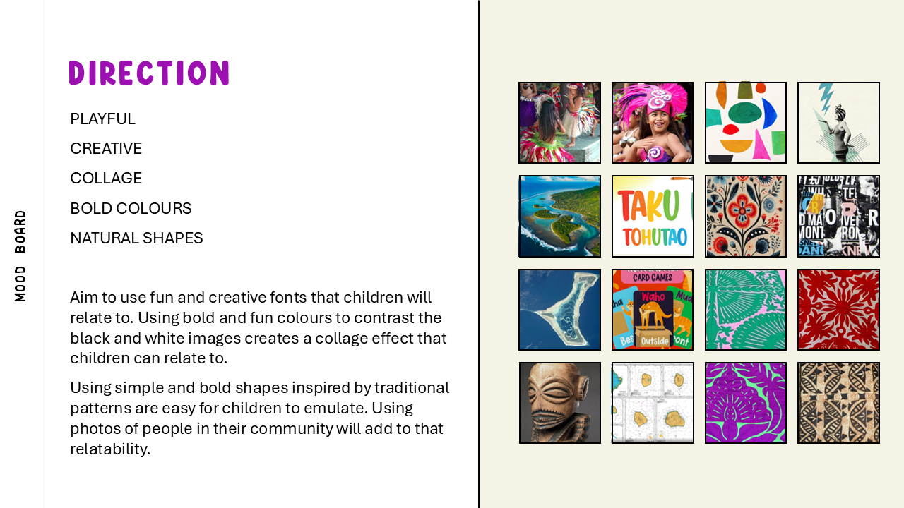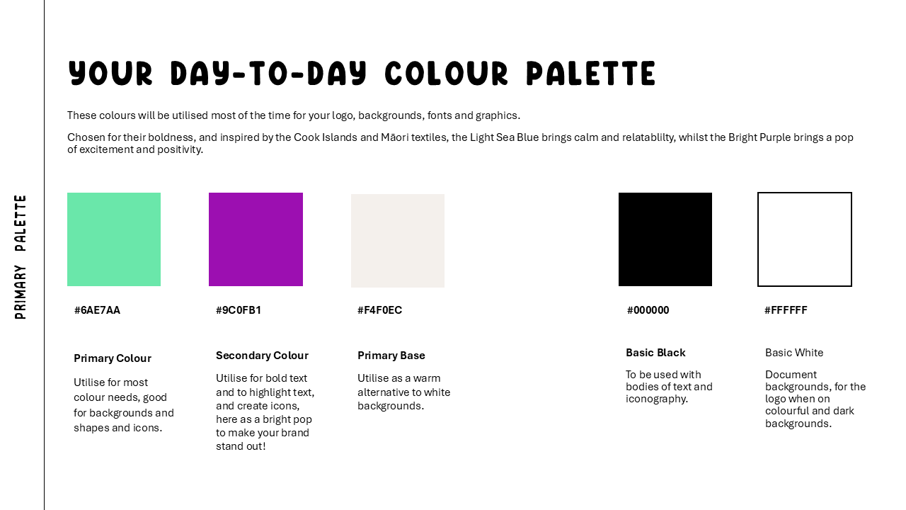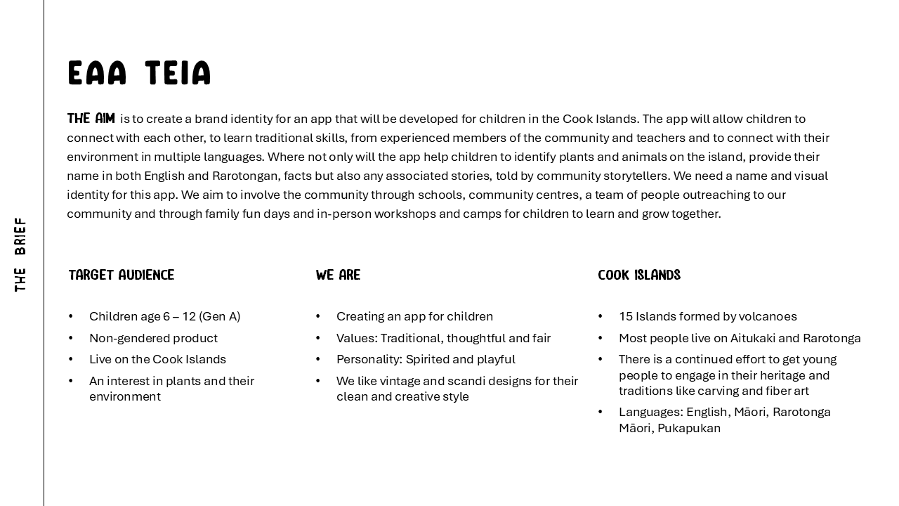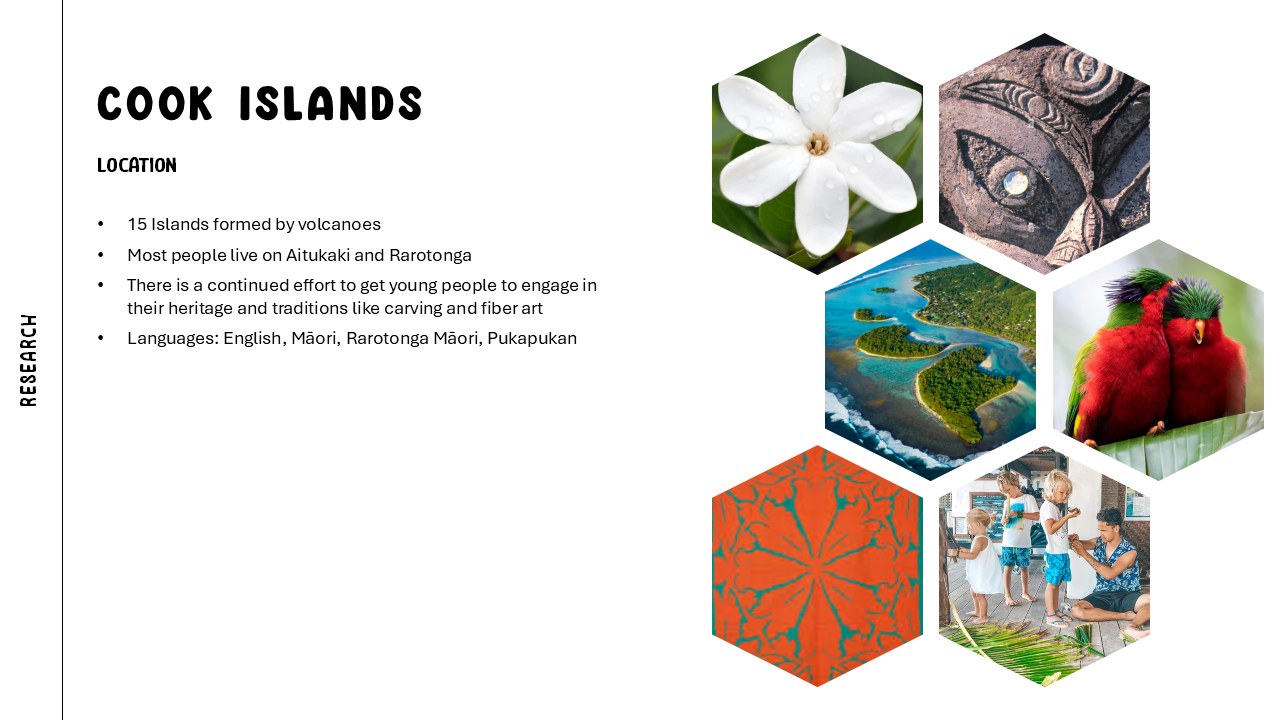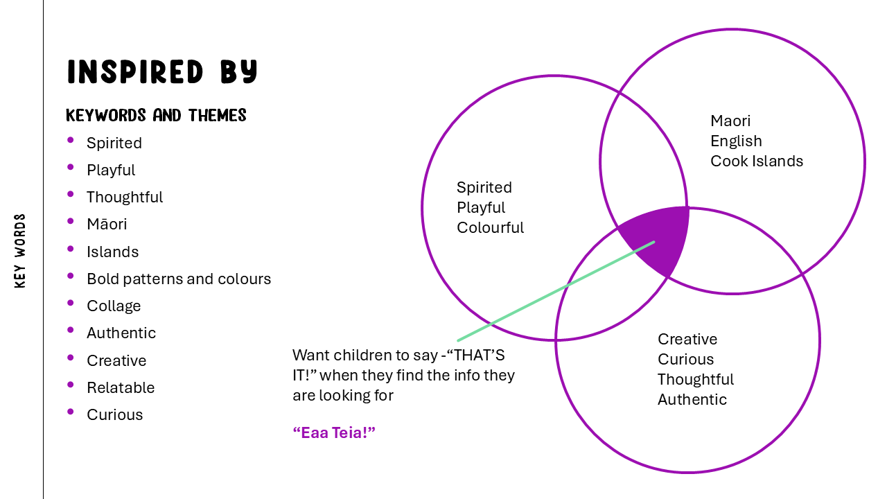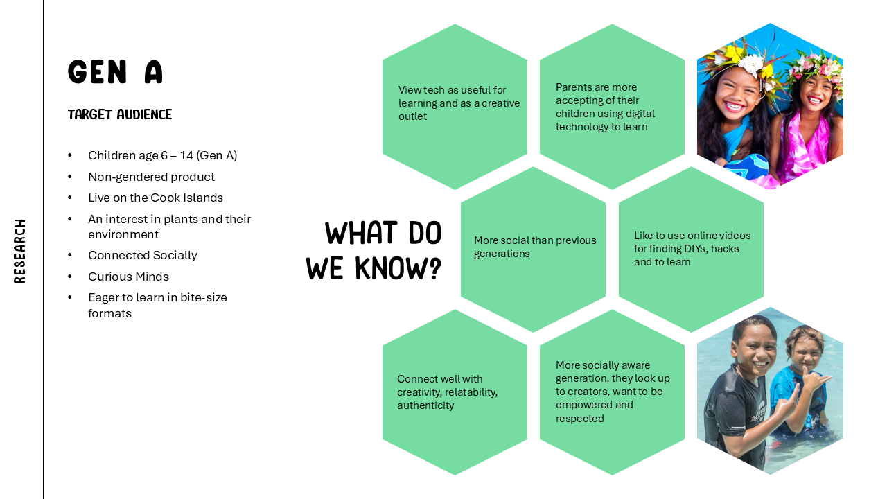 Create a company and brand identity that is in the arts and recreation industry, related to tech for children living on the Cook Islands. The company is thoughtful, spirited and playful.